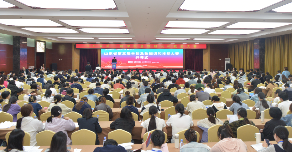 大赛开幕式于9月24日下午隆重举行。学校党委书记刘磊主持开幕式,代表全校师生向与会领导和参赛师生表示热烈欢迎,山东省教育厅体育卫生与艺术教育处处长王桂龙,山东省红十字会党组成员、秘书长汪洋,临沂市人大常委会党组成员、副主任陈海玲等领导出席开幕式并讲话。