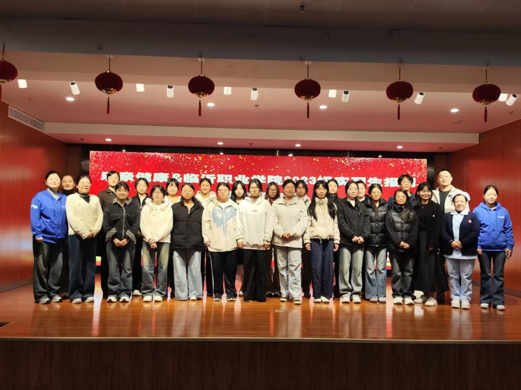 仪式环节紧凑有序,内容丰富务实。上海乐亲健康管理有限公司领导与医养健康学院领导先后致辞,围绕实习期间的岗位安排、培养方案、安全管理及职业发展路径作详细介绍,为学生明确实践方向;往届优秀实习生代表结合自身经历,分享一线工作中的成长心得与专业技能应用经验,为学弟学妹提供实用参考;2023级实习生代表发言,表达了珍惜实习机会、主动提升技能的决心。此外,现场设置互动答疑环节,校企双方共同为学生解答工作衔接、生活保障等疑问;同步开展 “致未来的信:时光胶囊” 特色活动,引导学生写下实习目标与期待;最后,全体人员合影留念,用镜头定格这一启航时刻。