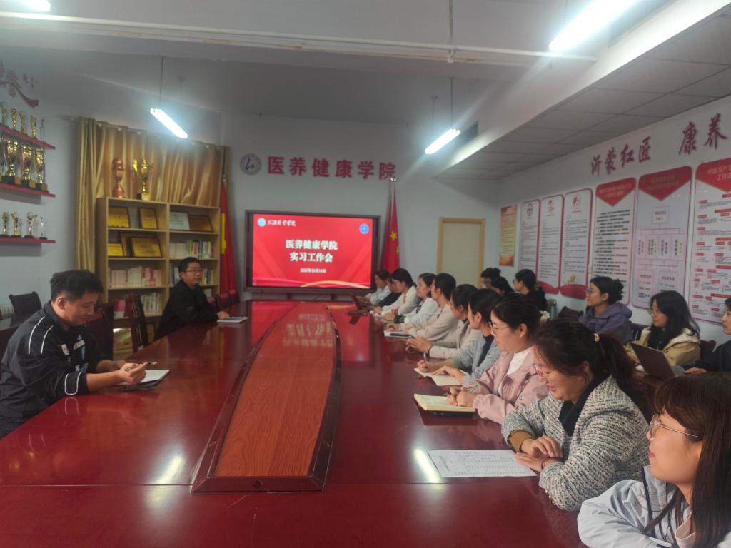 10月14日,医养健康学院召开实习工作会议,会议由学院业务副院长张大鹏和社会服务中心主任满坤主持,全体实习指导老师参会。